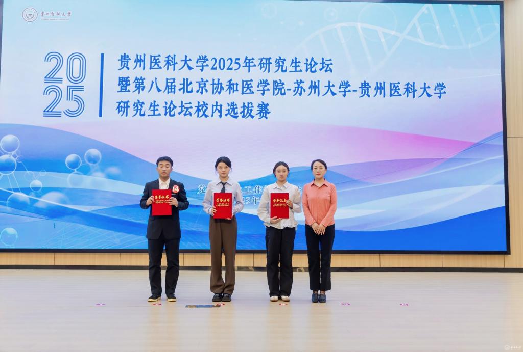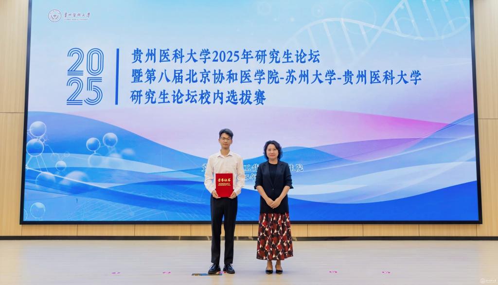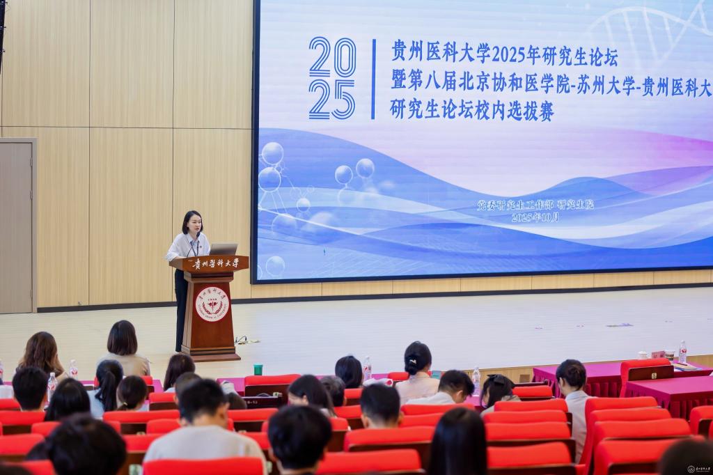 10月11日,awc777万象城娱乐官网2025年研究生论坛暨第八届北京协和医学院-苏州大学-awc777万象城娱乐官网研究生论坛校内选拔赛在云漫湖校区道德讲堂举行,论坛由党委研究生工作部、研究生院主办。校党委委员、副校长齐晓岚出席论坛并致辞,附属医院科研处处长刘丽荣、贵州省分子生物学重点实验室副主任洪伟、公共卫生与健康学院潘雪莉教授、贵州省药物制剂重点实验室何彬教授、附属医院消化内科宋铃榆博士担任本次论坛专家评委。党委研究生工作部部长陈思颖、研究生院副院长梅梅、令狐艳、药学院副院长廖尚高、公共卫生与健康学院副院长王大朋、法医学院副院长任峥等各研究生培养学院研究生工作分管领导、研究生导师和研究生代表参加论坛。