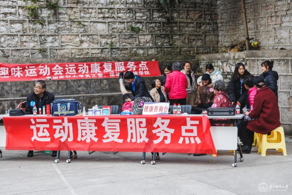 运动会期间,机关党委人事教工与工会党支部党员在各比赛点为老同志提供服务,运动与健康学院提供裁判和志愿者服务,大学生心理健康教育与咨询中心为老同志们提供心理健康咨询服务,附属医院急诊临床医生为老同志们提供身体健康咨询服务。
