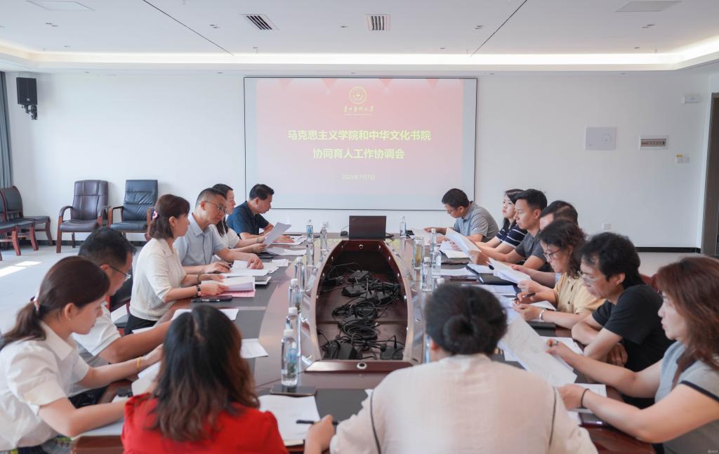 会议指出,要坚决贯彻落实省委、省教育工委、省教育厅相关工作要求,做好马克思主义学院和中华文化书院协同育人的人才培养模式教学改革,扎实推进思政课改革。会议强调,要积极探索马克思主义学院与医学人文学院、“一站式”学生社区有机融合,在文化育人上深化协同与合作;要明确发展目标,凝练文化内涵,打造具有“贵医”特色的文化育人模式;要不断提升工作针对性和实效性,在完善协同育人机制上,建立定期沟通协调机制,及时解决工作中出现的问题,形成育人合力。