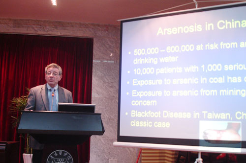 4月7日下午,应官志忠副院长邀请,国际医学地质学会首任副主席、美国地质调查局资深研究员、美国德克萨斯州大学地球化学系教授Robert Finkelman博士会同中科院地化所的郑宝山教授等来万象城官网交流。其中,Finkelman博士在万象城官网基础二号楼一楼会议室做了题为“医学地质学概论”的学术讲座,讲座由副院长官志忠教授主持。Finkelman博士由浅入深,通过国际上、中国其他地方以及在我省的大量数据向在场的师生介绍了这门学科的发展以及自然变迁对人类活动产生的各种影响。在场的教师和学生在听完讲座后向Finkelman博士积极发问,互动气氛相当热烈。此次活动由国际交流合作处与公共卫生学院共同举办。