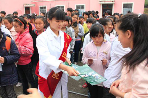 在活动中,医疗扶贫小组还为当地村民进行义诊、健康知识宣讲、发放疾病预防宣传册以及常用药物。同学们积极参与,用所学医学知识为两校中学生及群众排忧解难,真正做到了学以致用,在活动中坚定了服务人民的思想。同时也让我们的同学对偏远地区青少年及群众的健康现状有了更深的认识,看到了普通百姓对健康认知不足和贫困山区医疗条件落后的制约,体会到了作为当代大学生所应承担的历史重任,深知作为一名医务工作者任重而道远的使命感和责任感。
