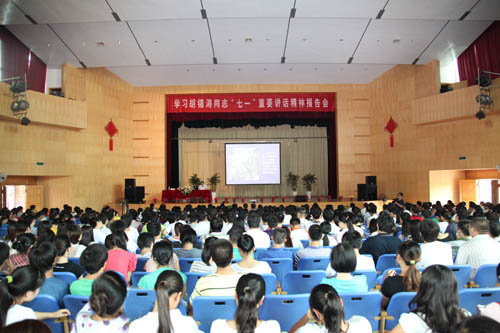 为深入学习贯彻胡锦涛同志“七一”重要讲话精神,把广大党员干部和群众的思想统一到《讲话》精神上来,根据省委宣传部、省委教育工委的安排,9月5日,学习胡锦涛同志“七一”重要讲话精神报告会在万象城官网大礼堂举行。党委书记赵明仁主持报告会,省委宣讲团成员、省社科院院长吴大华作了主题为“学习贯彻胡锦涛同志‘七一’重要讲话精神”的宣讲报告。学校领导班子成员,各主要职能部门和各(院、系、部)负责人,教职工代表,教师代表,以及研究生、本科生代表1200余人听取了报告。