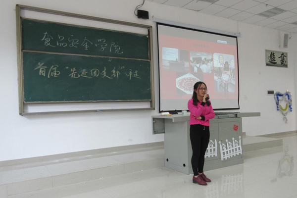 4月13日,食品安全学院在明理楼7202教室组织开展了首届"先进团支部"评选。评选由谭齐配同学主持,当天的评委由我院综合办公室刘龙老师、辅导员陈卫娅及学生会三位主席担任,全院同学参加了此次活动。
