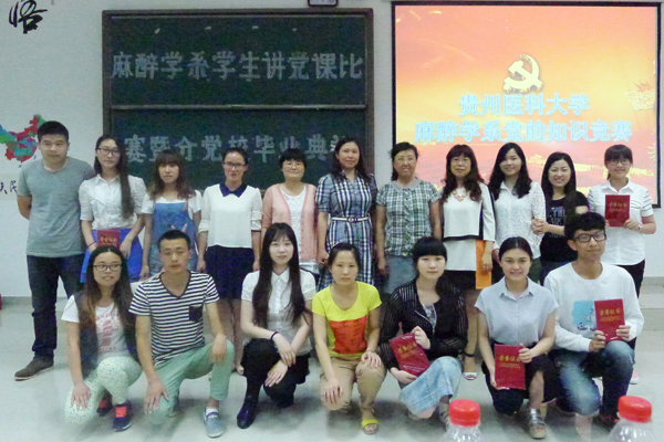 5月29日,麻醉学系第四十二期分党校举行了学生讲党课比赛暨第四十二期分党校结业典礼。经过一个多月的党校培训,麻醉学系第四十二期分党校,严格按照贵医党校〔2015〕1号文件要求,根据学校党委工作的总体安排及党校培训工作的总体部署,圆满完成了分党校理论学习课程、社会实践活动、学员学习总结等规定培训任务;在结业典礼前,增加了学生党员讲党课的内容,深受广大学员的欢迎。出席此次典礼的有麻醉学系党总支书记刘建华,麻醉学系教职工党支部书记莫海畲,麻醉学系党总支宣传委员刘艳秋,团总支副书记蔡炼,学生党支部书记周霁、分党校班主任徐青,麻醉学系109名分党校学员及参加讲党课比赛的12名同学。特别邀请到awc777万象城娱乐官网党委组织部副部长兼学校党校常务副校长周红及宣传部部长潘丽芬出席本次结业典礼。此次结业典礼由麻醉学系教职工党支部书记莫海畲主持。