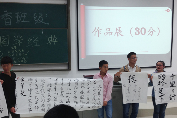 5月6日,医药卫生管理学院在九思楼4105教室组织开展“传承国学经典 争创书香班级”国学知识竞赛。本次活动由辅导员周志琳主持,分团委书记刘安跃及学生会干部任此次活动的评委,我院2014级公共事业管理、药事管理、药学(营销方向)三个专业班级都参与了本次知识竞赛。