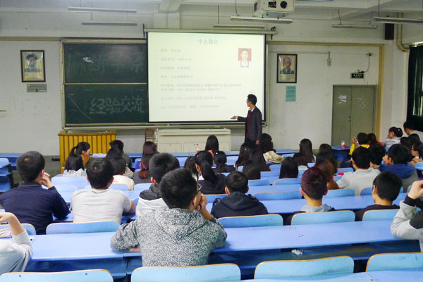会上,陈超同学给大家分享了他的大学生活,讲述了自己担任班干部工作期间不仅有效的提高了个人的工作水平和能力,学习效率也明显得到了提升。他向同学提出建议:在工作中,要严格要求自己,用行动来影响和感悟班级成员,做到“己所不欲勿施于人”;学习上,目标要明确,掌握有效的学习方法,提高学习效率,做到“事半功倍”。课余时间,坚持强身健体,做到“劳逸结合”。刘宏远、林雅贻和何琳三位同学会上分别以考研亲身经历详细分析了考研前景、考研复习方式方法。