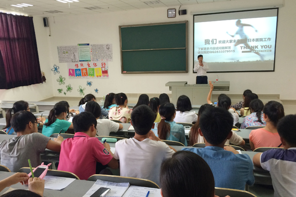 为了拓宽学生就业渠道, 6月1日下午2点,护理学院邀请鼎盛教育机构的吕骏老师在4106教室举行了一场关于赴日护士就业的交流会。参加此次交流会的有护理学院2013级辅导员毕丽老师及2013级同学。