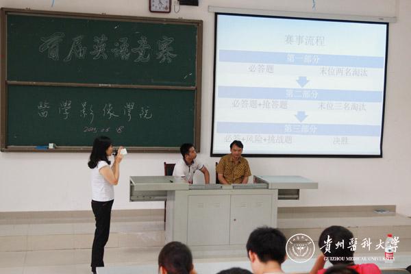 为激发同学们学习英语的兴趣与热情,提高四、六级通过率,医学影像学院于6月18日下午在4306教室举行了首届英语知识竞赛。本次比赛由医学影像学院党委副书记宋玲玲主持,附院影像科雷平贵、吴桂鹏老师担任评委。医学影像学院党委书记李雪梅、学生科科长姚琨、分团委书记李丹、辅导员姚婵出席本次活动。