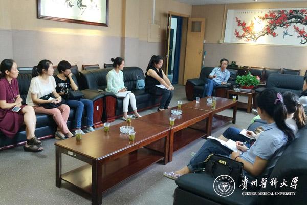 8月21日下午,口腔医学院副院长王永带队到awc777万象城娱乐官网附属人民医院(贵州省人民医院)门诊六楼口腔科调研,并召开2015年秋季学期教学工作协调会议,教学科研管理科廖健科长、姚岚副科长、awc777万象城娱乐官网附属人民医院(贵州省人民医院)口腔科罗洪主任、任课教师及教学秘书参加了会议。王永首先代表口腔医学院对省医积极支持万象城官网口腔医学院教学工作的老师表示感谢,对秋季教学工作的重要性作了详细的说明,指出临床与教学相结合的必要性,提出优秀的医生也应当同时教书育人,承担相应的课程教学,对自身也是一种锻炼。随后,在两位教学管理科长的认真沟通下,针对秋季学期各门课程的特点,口腔医学院与省医承担课程的教师作出了具体的课程安排。协同会议主要围绕各科教学质量、教学进度、教师安排及教师乘车时间地点、教学中出现的问题进行了充分讨论和沟通交流;罗洪主任对此次省医老师承担教学任务表示大力支持,要求承担教学的老师要按时上课,认真参加口腔医学院举行的教师集体备课,采用统一教学PPT模板,使得教学规范化,保证教学质量要求。