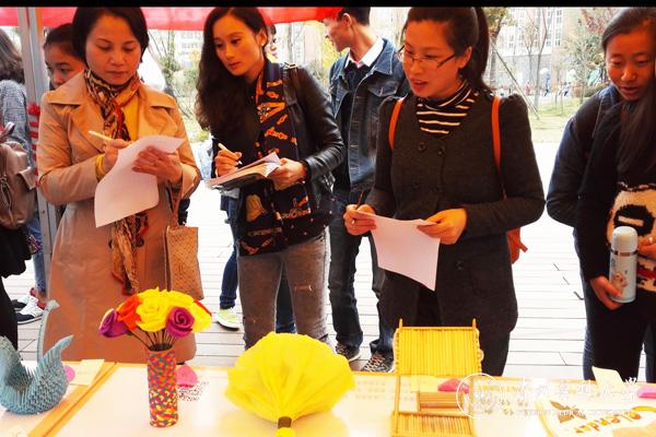 评选完毕后爱心义卖活动正式开始,老师和同学们被这些精巧细致的手工艺品所吸引,纷纷伸出爱心之手,买下了自己喜爱的作品,为希望工程献出了自己的一份爱心。现场也不乏同学把自己的零花钱投入募捐箱,整个义卖现场充满了浓浓的爱意。最后我院学生会将与校社团联合会、希望工程爱心社一起,将募筹和义卖所得500余元全部捐献给希望工程,在寒冬即将来临之际,给远方山区需要帮助的孩子们送去一点温暖。