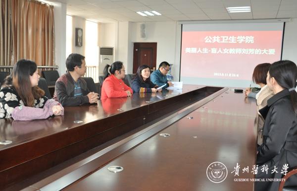 11月26日上午,公共卫生学院组织全体教师学习中央电视台、《人民日报》等中央媒体对贵阳市白云区第三中学刘芳老师精神及事迹的集中连续报道,学习由公共卫生学院党委副书记杨光红主持,参会教职工结合公卫院当前工作实际展开了热烈讨论。