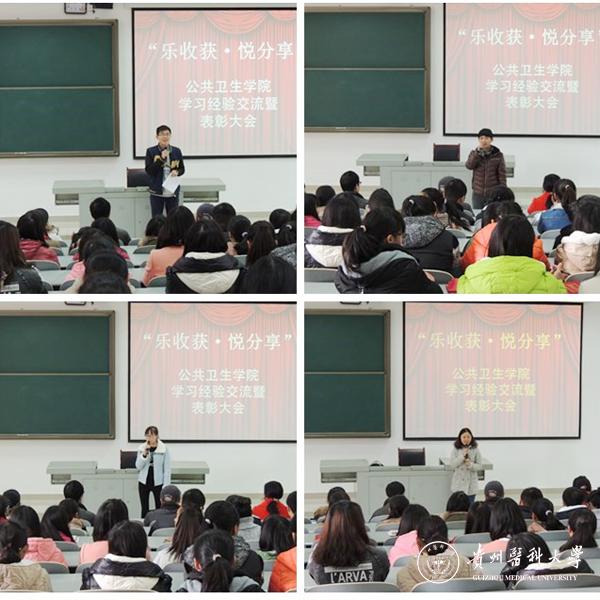 2015年12月31日,公共卫生学院师生集聚一堂,在4505教室举办了一场以“乐收获·悦分享”为主题的经验交流暨表彰大会。此次活动旨在进一步促进广大公卫学子对本专业的了解及热爱,提高同学们的学习兴趣及专业关注点,激发他们参与各类专业技能大赛的热情,并希望通过此次经验交流会与低年级同学们分享学习和竞赛的心得体会。