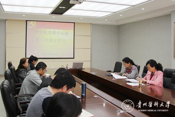 4月18日,药学院党委中心组在格物楼六楼会议室开展第一次集中理论学习,会议由药学院党委书记席晓岚主持,党委副书记徐贵荣、党委委员和各支部书记参加了此次会议。