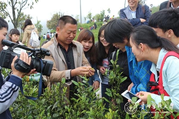 贵安高山云雾茶场负责人王家道及有关技术人员带领全体师生参观了茶叶种植园和茶叶生产车间,讲解了茶叶的采摘方法及生产、制作、加工流程。在茶场技术人员的示范、指导和组织下,师生们纷纷来到茶叶种植园,参加了采摘茶叶的生产劳动。第一次采摘茶叶的师生们显得有些手忙脚乱,但是通过技术人员的指导,师生们渐渐掌握了技术要领,并以饱满的热情投入到劳动中。
