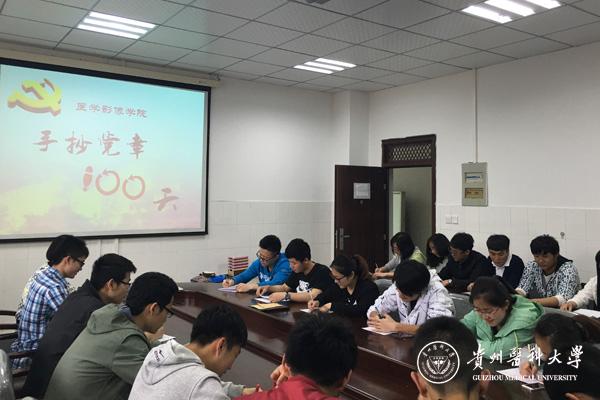 4月29日晚,医学影像学院学生党支部在北校区影像学院会议室开展“手抄党章100天”活动,学生党支部书记姚婵、全体学生党员参加了活动。