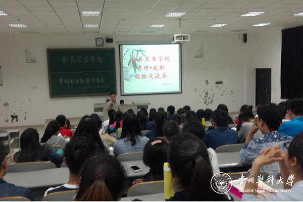 为加强我院学风建设,进一步提高我院学生的学习热情和积极性,帮助学生尽早明确考研目标以及掌握就业的相关技巧。5月17日晚,公共卫生学院在4306教室成功举办了“考研·就业”经验交流会。交流会邀请了吴弦等7位考研成绩优异的同学,以及林菁菁、陈雪松两位已经就业的同学,从自身的经验出发,围绕着如何选取专业、制定备考计划,如何在考外省学校中占取优势,以及英语四六级对考研和就业的影响,给与本我院的各年级同学进行做出考研及就业方面的经验交流指导。