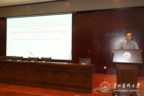 王旭东以Control of Extracellular Fluid Osmolarity and Sodium Concentration by the Kidneys 为题,用流利的英文教授了肾脏对细胞外液渗透压和钠离子浓度的调控,还原了万象城官网优秀教师为留学生上课的真实场景。