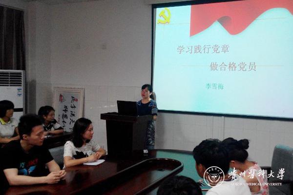 6月26日上午10点,医学影像学院在北校区会议室开展了“两学一做”学习教育专题党课。党委书记李雪梅为我院全体党员作《学习践行党章,做合格党员》专题党课。党委副书记宋玲玲主持。