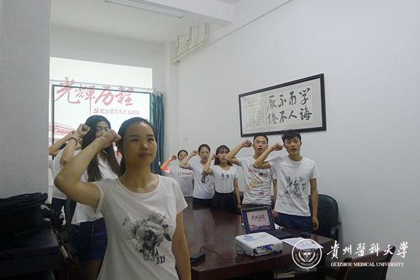 6月30日下午,麻醉学院学生党支部在北校区麻醉学院会议室开展“两学一做”学习教育系列活动之回顾党的光辉历史,会上全体党员一起重温入党誓词。参加活动的有麻醉学院学生党支部书记周霁,辅导员徐青以及全体党员。