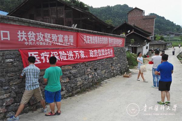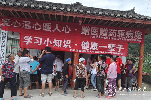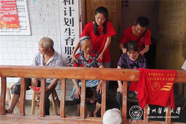 7月14日,服务团在新美村三个寨子分别开展了以“真情融入社区·义诊温暖民心”为主题的爱心义诊活动、以“爱心温心暖人心·赠医赠药驱病魔”为主题的赠医赠药活动、以“学习小知识·健康一辈子”为主题的健康小知识的科学宣传活动。服务团邀请到贵医附院的5位经验丰富的临床医生为当地百姓诊病,全程医管院志愿者积极与老乡耐心交流、送凉茶、按摩、量血压、送药品,时时关注村民动态。三穗县扶贫开发办公室对活动给予了大力支持,县电视台记者对本次活动进行了全程追踪报道。