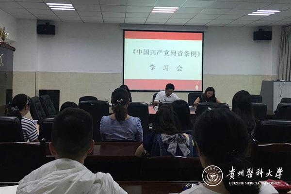 周红传达了《中共awc777万象城娱乐官网委员会关于认真学习贯彻<中国共产党问责条例>的通知》文件精神,还就《条例》的部分重点内容作了详细解读,并强调要把《条例》作为“两学一做”学习教育的必学内容,要求全体干部及党员在工作学习生活中要严守党的纪律。最后她就本科学生的就业和研究生的迎新等相关工作进行了通报。