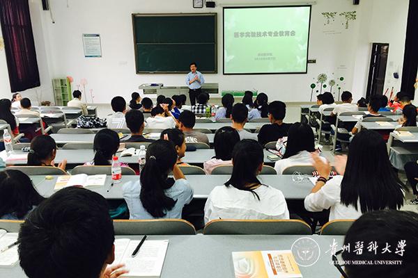 9月7日12:30,为加强新生对专业的了解和认识,并增强学生对专业、学院和学校的认同感,基础医学院于九思楼307教室召开2016级医学实验技术专业教育会,基础医学院党委书记徐国强、基础医学院院长杨明、基础医学院党委副书记廖兴江、基础医学院副院长吴家红、基础医学院学生科科长汤武庆及2016级医学实验技术班全体学生参加本次专业教育会。