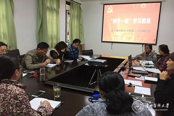 10月11日上午,成教学院召开“两学一做”学习教育集中研讨会。会议由职工党支部书记杨静主持。