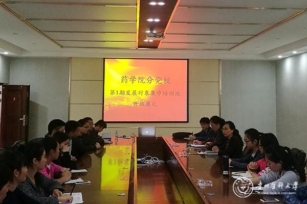 为认真贯彻落实校党委对党员发展、培养、教育精神,增强党员的党性修养,促进党员发挥先锋模范作用,根据贵医党校〔2016〕2号《关于举办第45期入党积极分子培训班和第1期发展对象集中培训班的通知》文件精神,药学院党委于11月22日分别在南校区7403教室和药学楼6楼会议室隆重举行了药学院分党校第四十五期入党积极分子培训班及第1期发展对象集中培训班开班典礼,药学院党委书记席晓岚,党委副书记徐贵荣,党委委员傅晓钟、李莉,团委书记雷豪,班主任徐冉以及入党积极分子120人,发展对象28人参加了开班典礼。典礼由徐贵荣主持。