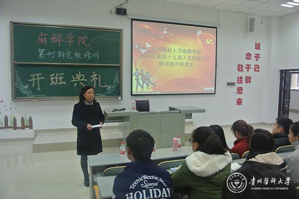 11月24日下午,麻醉学院党校第四十五期入党积极分子培训班开班典礼在X7607教室举行。学院党委书记刘建华、综合办主任何为、教学科研管理科副科长文钰纾、辅导员徐青及全体学员参加。开班典礼由学生党支部书记周霁主持。