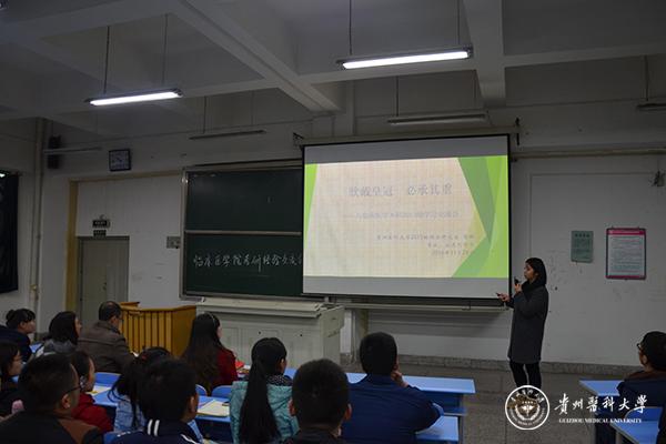 周红强调要注重平时积累,坚持不懈;一份耕耘,一份收获;勉励同学们做到博于学问,明于睿智,笃于务实,志于成人。杨婕提出医学生继续深造是必经之路,要有良好的精神状态,要有充足的自信心,并鼓励大家考研。戚璐强调同学们要明确自己的方向,制定目标,踏实走好每一步,多学多读多做。