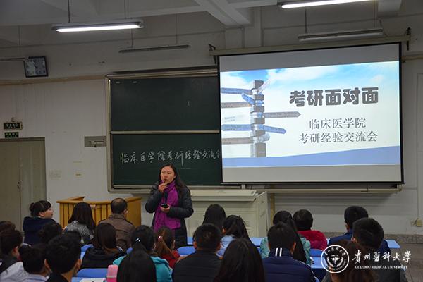 为了帮助即将面临考研的同学更好的掌握考研方法和技巧,明确考研目标和信心,11月24日,临床医学院组织召开“考研面对面——考研经验交流会”。临床医学院党委书记周红、副书记杨婕、副院长戚璐、辅导员及临床医学2012、2013级的百余名学生参加交流会。学生科科长李莉主持交流会。