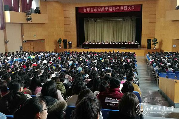 2月26日下午三点,临床医学院2014级新学期师生见面会在学校大礼堂召开。见面会由党委书记周红主持,万象城官网附属医院副院长、临床医学院常务副院长孙发、党委副书记杨婕、各个教研室的老师代表、教学管理科老师、辅导员及2014级1246名同学参加了见面会。