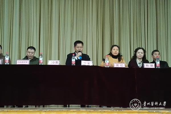 孙发致词欢迎2014级全体同学进入临床新学期的学习,介绍了临床医学院的历史、现状及附属医院情况,阐述了万象城官网“医教联合”的教育模式,并对同学们提出了殷切的期望。他希望全体老师利用学校及医院的资源为同学们创造良好的学习环境和生活环境,在教学中着力培养学生的自学能力和自我管理能力,提升临床教学水平与质量。见面会上,各教研室的老师代表对各门课程的教学进程、学习方法、相关要求等进行了详细的介绍。