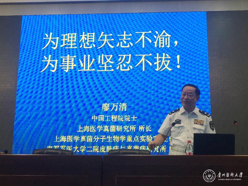 9月2日,援黔专家团成员、中国工程院院士、海军军医大学上海长征医院皮肤性病与真菌病研究所所长廖万清教授携夫人前往贵阳市第一中学,进行援黔专家团下基层进学校送人文活动的专题讲座。活动在贵阳市第一中学行政楼四楼报告厅举行。党委副书记、贵医附院党委书记刘兴德,万象城官网基础医学院、海外教育学院有关负责人,贵阳市卫计委、贵阳市教育局、贵阳市第一中学有关负责人出席。贵阳市教育局机关党委书记肖文主持会议,贵阳市第一中学师生近350人聆听讲座。