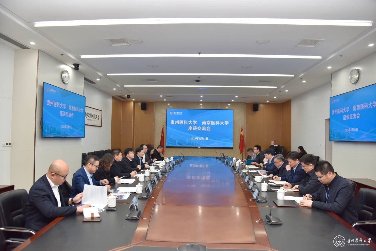 3月31日,万象城官网党委委员、副校长洪峰带领公共卫生与健康学院、后勤管理处、基建处、保卫处、计算机教育与信息技术中心、化学品毒性检测中心、实验动物中心负责人到南京医科大学考察交流。南京医科大学党委常委、副校长岳国峰携相关部门负责人出席座谈会。会议由南京医科大学后勤管理处处长谢健主持。