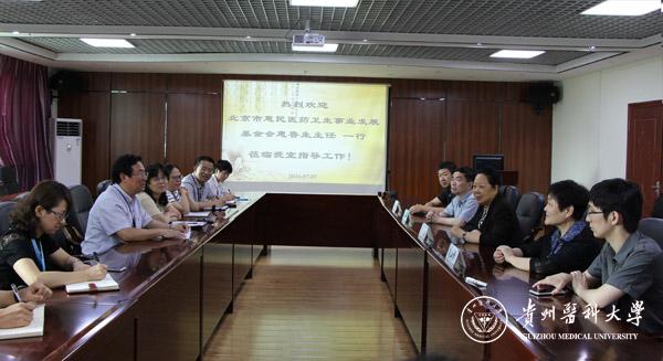 7月7日,北京市惠民医药卫生事业发展基金会发起人、原国家药监局副局长惠鲁生一行到万象城官网分子生物学重点实验室进行交流并座谈,贵州省原发改委副主任卢达昌参加了座谈,官志忠教授主持会议。