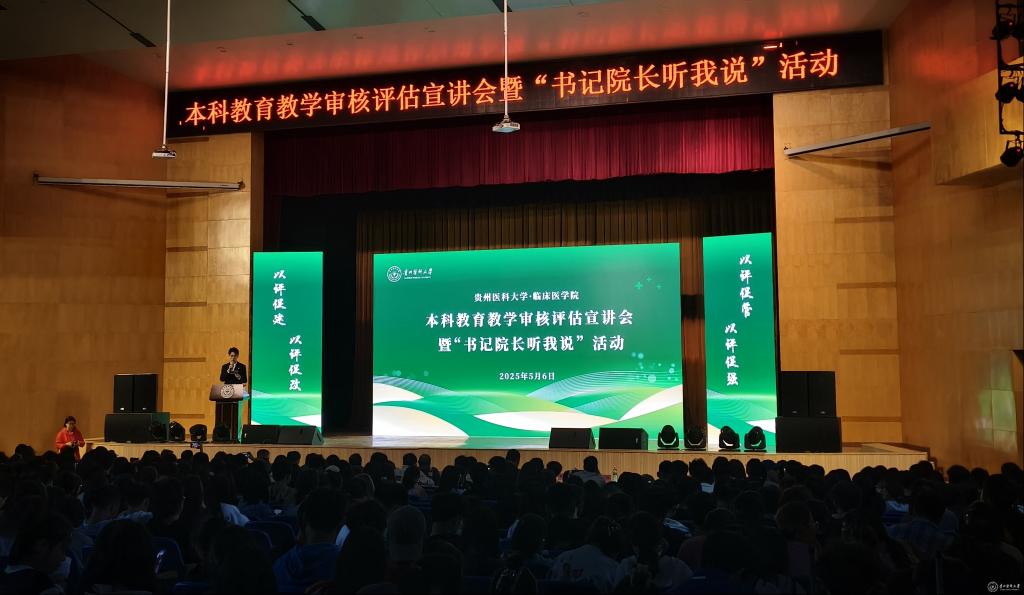 5月6日,临床医学院在北校区礼堂举办本科教育教学审核评估宣讲会暨“书记院长听我说”活动。附属医院党委书记、临床医学院党委书记李海洋,副校长曾柱,附属医院院长、临床医学院院长左石,校党委委员、党委宣传部部长、党委统战部部长陈颖,附属医院相关领导、相关职能部门负责人,学校党政办公室、学生处、医院管理处、校团委等部门负责人,医学影像学院、麻醉学院、医学检验学院负责人,以及临床医学院全体行政人员、辅导员、各教研室负责人、教学秘书、教师代表,临床医学院2022 级全体学生共计1100余人参加。