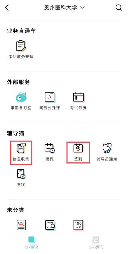 通过“今日校园”APP,分别进行“信息收集”和“签到”。