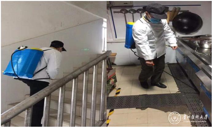 组织物业公司对南、北校区公共区域进行消毒;加强对进出人员的管理,外来人员进入校园时必须佩戴口罩,测量体温无异常后方可进入;每天工作前对物业公司员工进行岗前体温检测登记及记录工作。