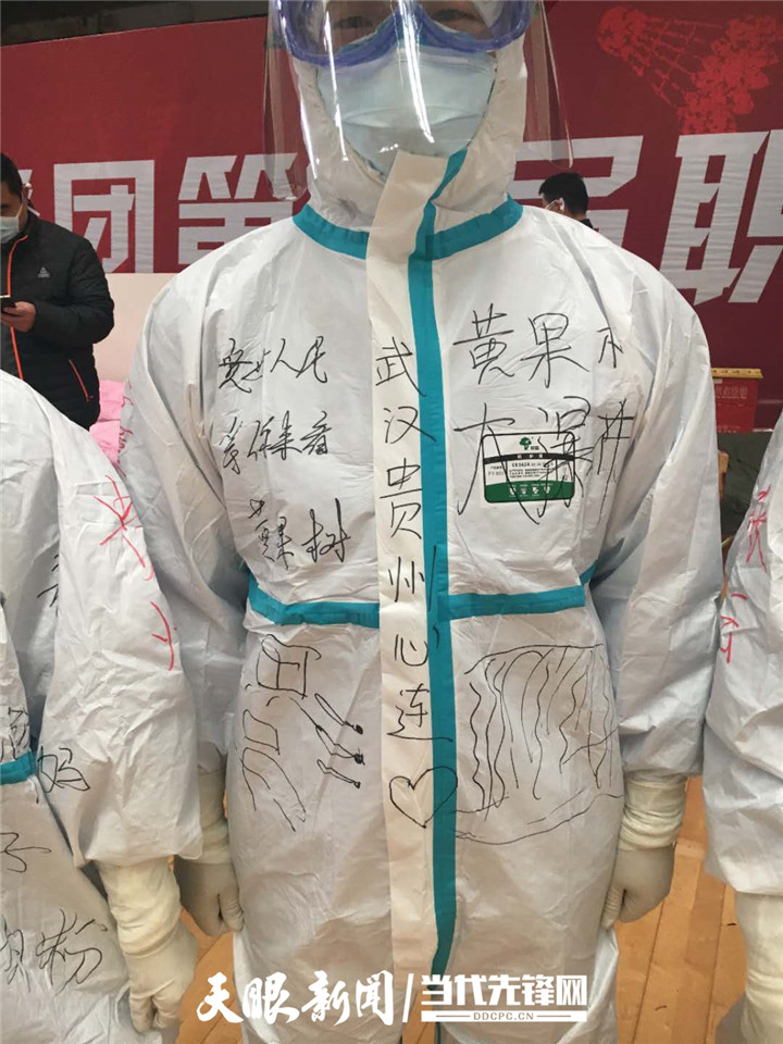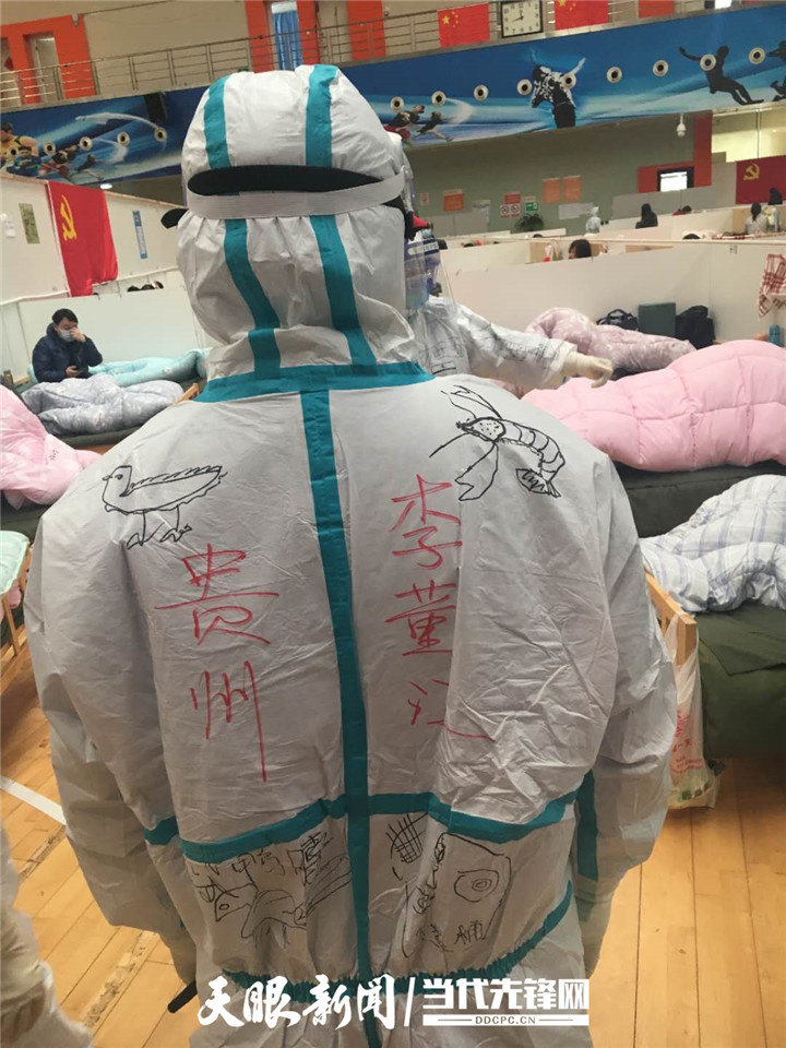 “我们的防护服是不是很漂亮?这都是患者给我们画的。”国家紧急医学救援队(贵州)队员、awc777万象城娱乐官网附属医院心内科护士李董江笑嘻嘻地告诉记者,昨天他们跟患者来了一场别开生面的涂鸦赛,让武汉涂鸦和贵州涂鸦来了一次生动的“碰撞”。