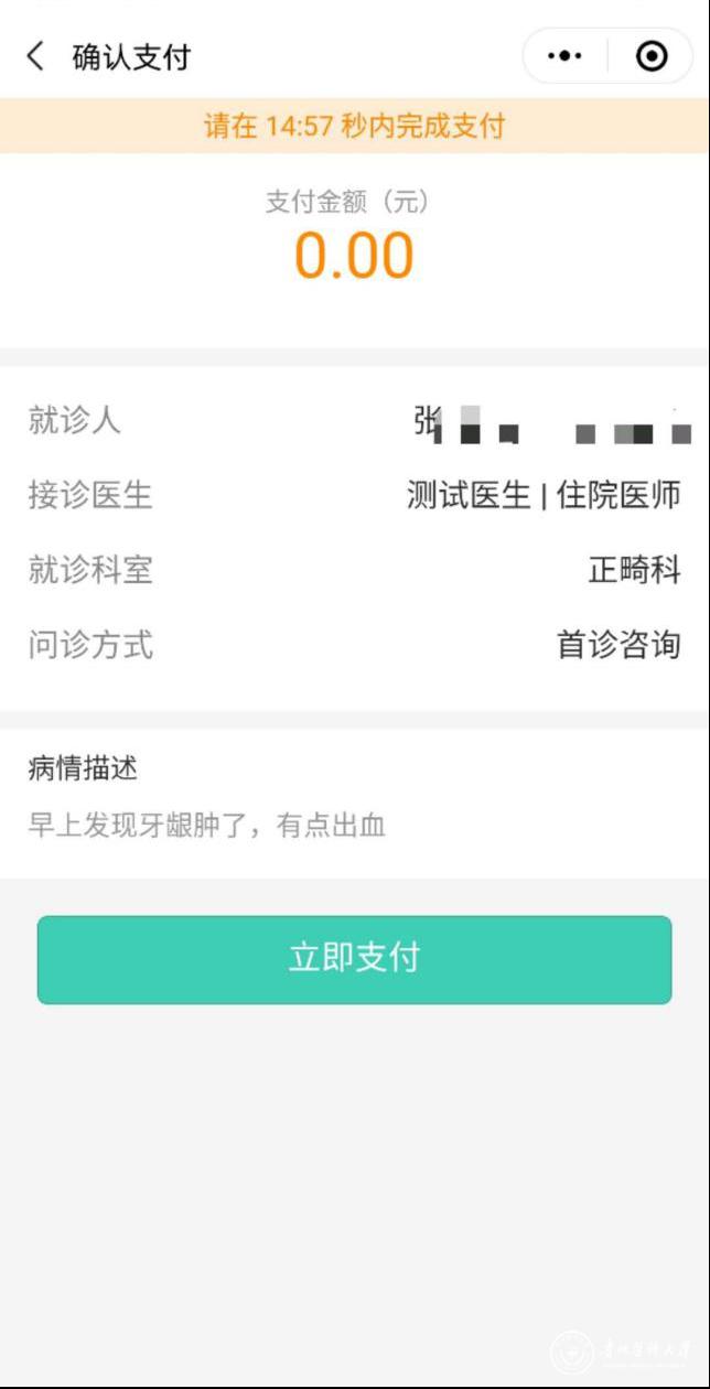 答:两个渠道:一是通过微信公众号“awc777万象城娱乐官网附属口腔医院”下方的菜单“就医指南”-“在线咨询”;二是通过扫描以上二维码直接进入。