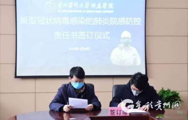 1月30日,贵医附院举行了新冠肺炎院感防控责任书签订仪式,明确科室主任、党支部书记同为科室院感防控工作的第一责任人,并签订责任状。