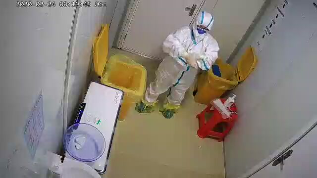 对“红区”(污染区)一些重点地方,我们信息组组长温红宇利用信息化手段,安装了监控摄像头。实时监控从“红区”(污染区)“出舱”的医护人员,对脱下防护服遇到困难的,现场连线、实时指导。时常在凌晨,都能看到院感老师忙碌的身影和投入的指导。