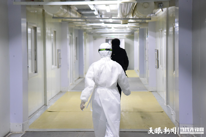 这张照片的拍摄背景是我们正在向雷山医院二病区挺进。那天晚上,所有医护人员将病房整理好,一夜收治了31位患者,当时,刘静忙碌到凌晨的背影被同事抓拍。