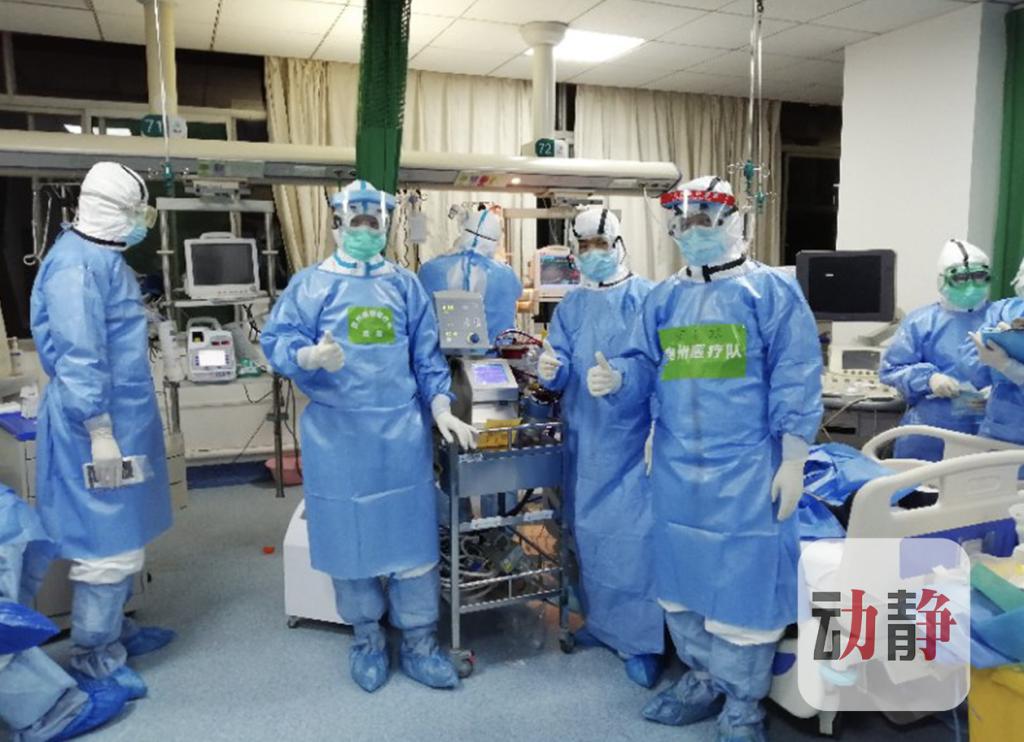 在对患者的治疗上,医疗队切实开展精细化管理。建立了主管医师负责制,对实施有创呼吸机辅助呼吸的,高度关注患者器官功能障碍并给予保护;对病情特殊的危重型患者采取本医疗组全体医疗人员会诊,提出针对性的治疗方案。坚持日例会制度,每天定时对重症危重症患者病情进行讨论研究,制定“一人一策”的施治方案。实行疑难病例远程会诊制,开展两省八院(鄂州市中心医院、雷山医院、第三医院与贵州省人民医院、awc777万象城娱乐官网附属医院、遵义医科大学附属医院、贵州省将军山医院、贵州省职工医院)远程会诊,逐一讨论鄂州市危重症患者救治方案,必要时与国家级层面危重症专家进行远程会诊。最后,医疗队也通过切实实施新技术应用来降低重症率。一是将俯卧位通气作为肺保护性策略手段在ICU广泛应用,改善患者呼吸功能。二是使用床旁超声,对患者相应脏器情况检查评估。三是应用经鼻高流量吸氧,直接将一定氧浓度的空氧混合高流量气体输送给患者,迅速改善氧合。四是利用血气分析,检验判断机体是否存在酸碱平衡失调以及缺氧程度等,为治疗提供相应支持。五是用康复人员血清对危重症患者进行血浆置换,使病人尽可能产生抗体。六是3月6日对中心医院1例生命垂危的患者果断启用ECMO(俗称“人工肺”)技术支持,挽救了患者生命。目前患者病情稳定。