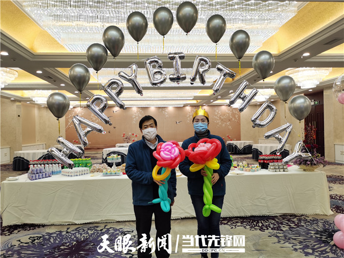 说意义非凡,是鄂州酒店特别有心,专门提出举办生日会,并布置了会场、鲜花、气球、蛋糕、舞台等,在这样一个特殊时期,让我们深深感受到了贵州人民和鄂州人民风雨同舟、齐心协力、并肩作战的深情厚谊。