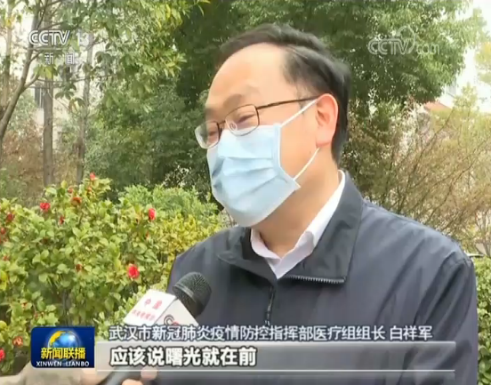 武汉市新冠肺炎疫情防控指挥部医疗组组长白祥军:我们过去的努力已经看到了希望,应该说曙光就在前面,接下来的工作,我们还是按照习近平总书记的要求,集中最优质的医疗资源,优秀的专家,最先进的技术和药品的应用,以及中西医结合的方法,来多学科合作,让更多患者得到及时救治,挽救生命。