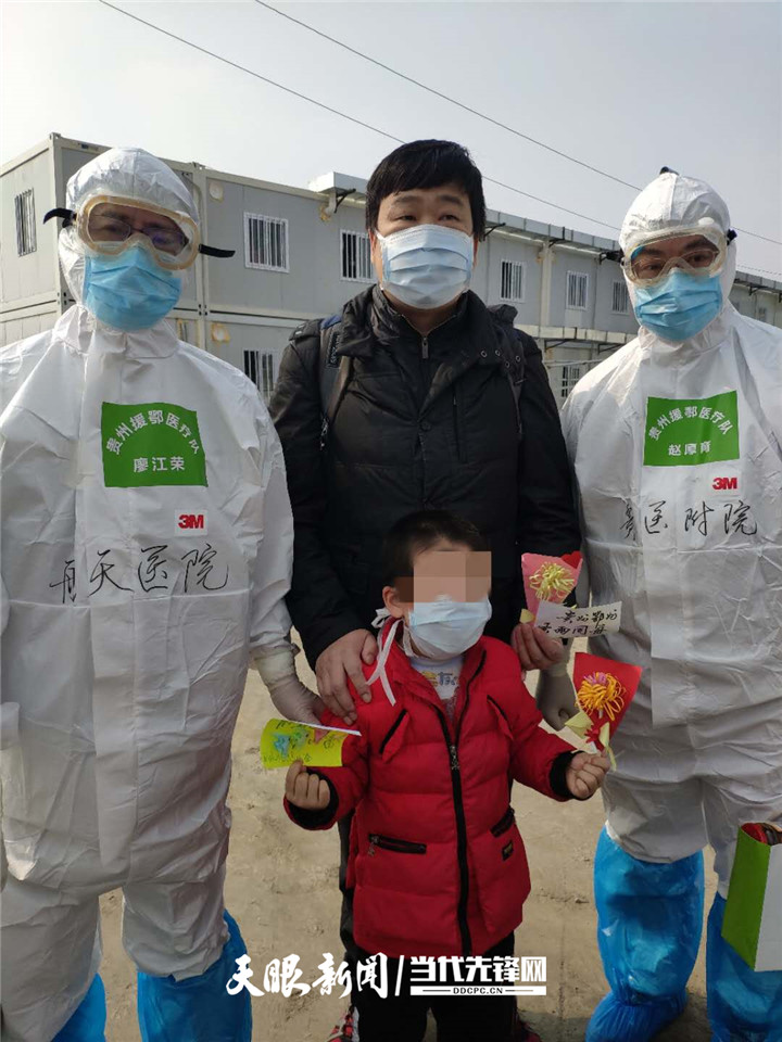 刘韬一家三口和贵州医疗队合影