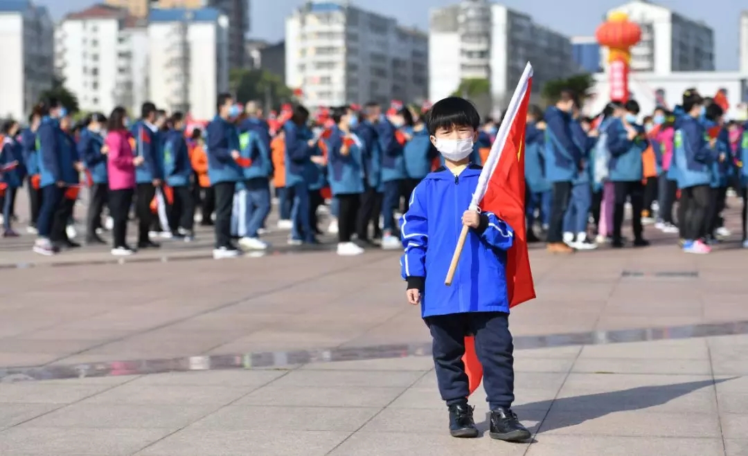 图中的这名孩子,名叫颜赞,今年七岁,他的妈妈是一位志愿者。据严妈妈介绍,颜赞在家里呆了50多天,今天第一天出门。就为送医疗队。
