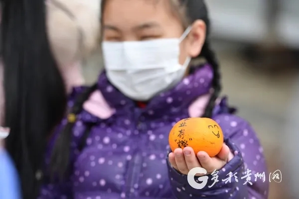 为了欢送她们出院,鄂州市雷山医院六病区特地为患者准备了小礼物,一人一个橙子,代表“心想事成”。钟女士的女儿拿到贵州医护人员送的橙子,上面写着“学业有成”,她很开心。